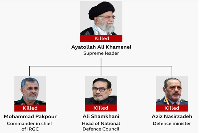 අමෙරිකා – ඊශ්‍රායල ප්‍රහාර හමුවේ ඉරානයට අහිමි වූ ප්‍රධානතම නායකයන්