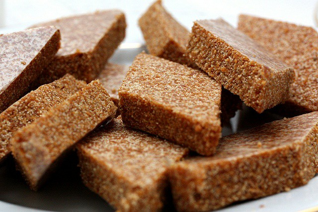 හොඳින් ඝන වන විට බටර් තැවරු තැටියකට හෝ ලෑල්ලකට දමා තුනී කර අවශ්ය ප්රමාණයට කෑලි කපාගන්න
