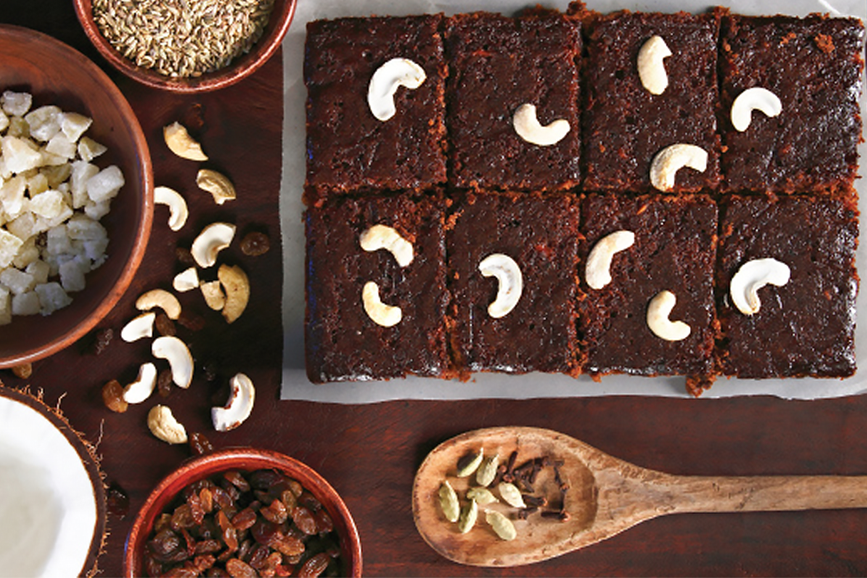 පොල් හොඳින් තැම්බී පැනි පොල් සෑදෙන විට කුලු බඩු දමා කපාගත් පලතුරුවර්ග වලින් කජු ටිකක් ඉතිරිකර ඉතිරි ද්‍රව්‍ය එකතු කරන්න. ලිපෙන් බා එයට පාන් පිටි ටික ටික කලවම් කර පසුව තෙල් කඩදාසි එකක් කිලෝ එකක කේක් තැටියට එලන්න. එහි බටර් ගා මිශ්‍රනය දමා එය මතුපිටට ඉතිරි පැනි වත්කරන්න. කජු වලින් සරසා ගන්න.
