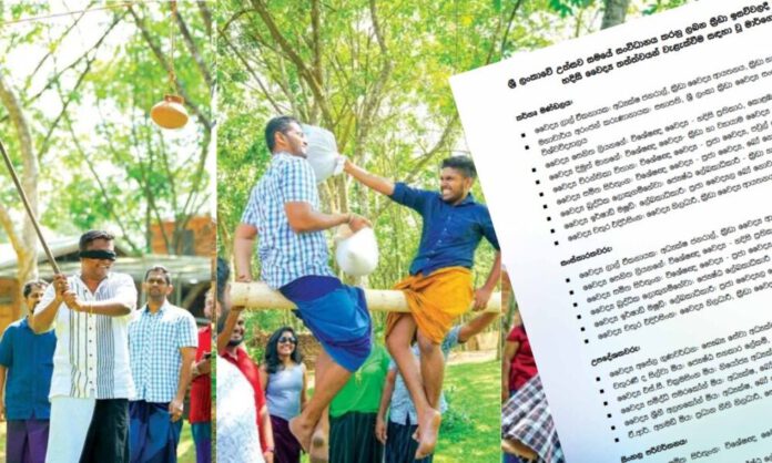 කොට්ට පොර ගැසීම, කනා මුට්ටි බිඳීම, ගම හරහා දිවීම, පා පැදි තරග, පිහිනුම් තරග, ඔරු පැදීමේ තරග, හැන්ද මත දෙහි ගෙඩිය තබාගෙන යාම, ලිස්සන ගහේ නැගීම, කඹ ඇදීම, ගෝනී පැනීම යනාදී තරගවලට සුවිශේෂී අවදානයක් යොමුකරමින් මෙම මාර්ගෝපදේශ නිකුත්කර ඇත.