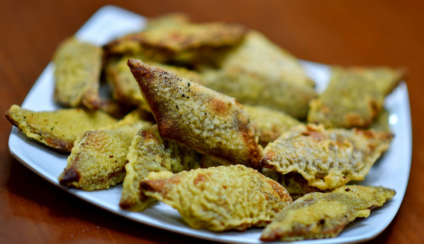 මුලින්ම කපා ගත් මුං පිටි මිශ්ර කැබලි බැටරයේ දවටා ගැඹුරු තෙලේ බැද ගන්න.