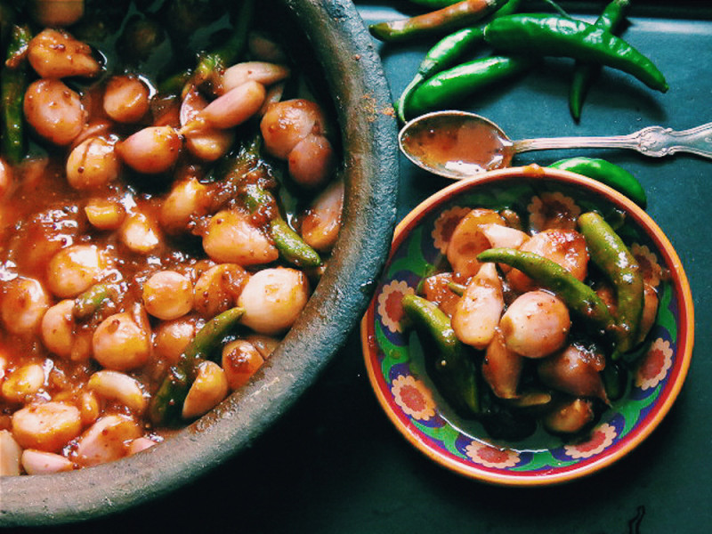 දැන් වෙනත් මැටි භාජනයකට විනාකිරි ටිකක් ලිප තබා ගම්මිරිස් ඇට ටිකක් හා කුරුඳු පොතු කැබැල්ලක් දමා උතුරන්නට දෙන්න. උතුරන විනාකිරි පෙරා ඉහත කී ලුණු මිරිස් කලවම් කර ඇති භාජනයකට දමා වසා තබන්න. ලුණු, ගම්මිරිස්, සුදුලූණු ප්රමාණවත් රසට මිශ්ර වී ඇත්දැයි පරීක්ෂා කර බලන්න. සකස් කිරීමෙන් දිනකට පසුව ආහාරයට ගන්නා විට අච්චාරුවේ නියම රස ඔබට දැනේවි.