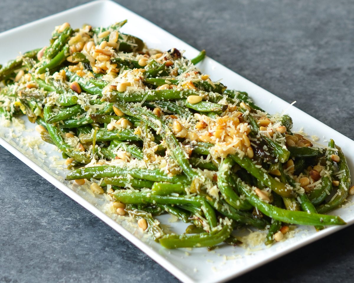 - ලුණු කුඩු, ගම්මිරිස් කුඩු සහ ගාර්ලික් පවුඩර් බෝංචි මත සමව වැටෙන සේ විසුරුවන්න.