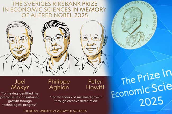 2025 ආර්ථික විද්යාව සඳහා වූ නොබෙල් ත්යාගය තිදෙනෙකුට ප්රදානය කරන බව නොබෙල් ත්යාග කමිටුව අද (13) නිවේදනය කළේය.