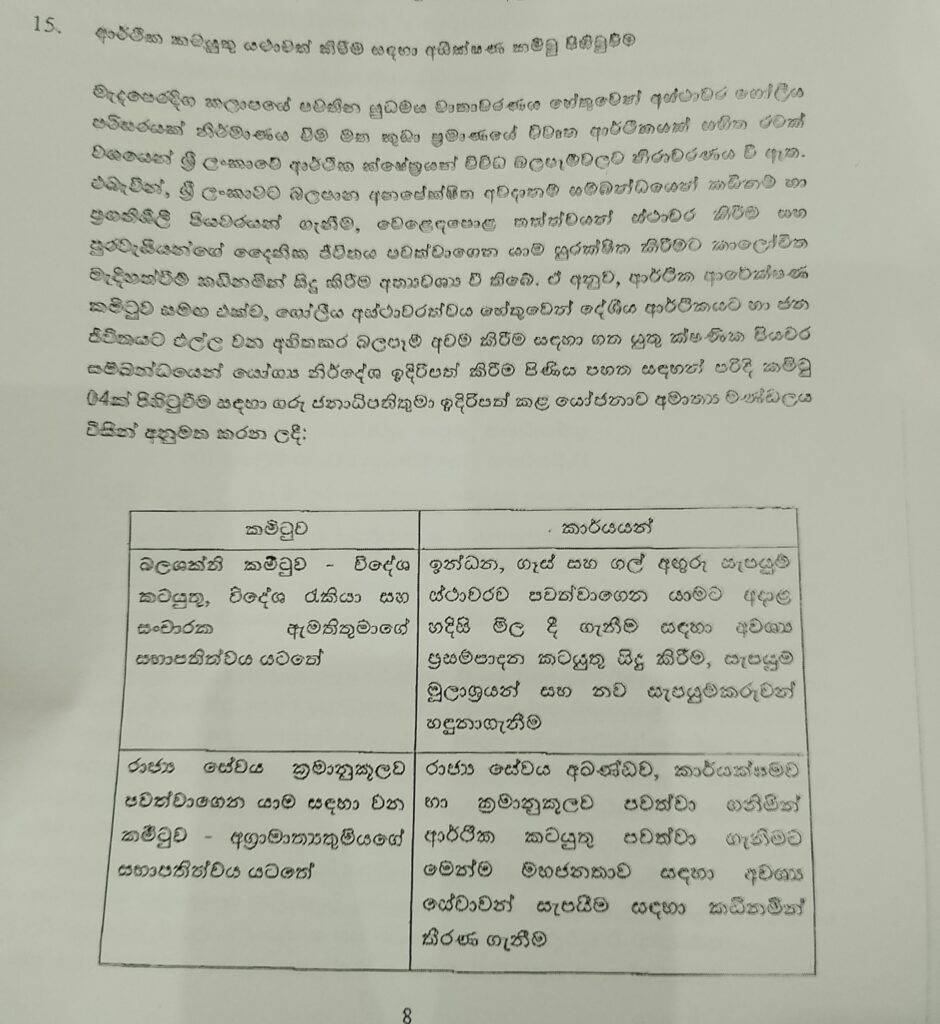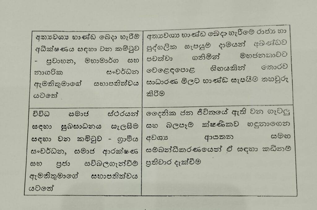 ආර්ථීක කටයුතු යථාවත් කිරීමට අධීක්ෂණ කමිටු 04ක්..