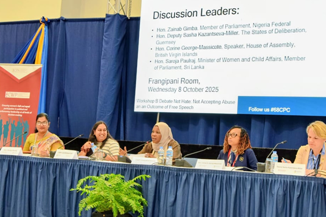 පොදු රාජ්ය මණ්ඩලීය රටවල් තුළ කාන්තාවන්ට හිතකර, පීඩනයෙන් සහ හිංසනයෙන් තොරව දේශපාලනයේ යෙදීමේ අයිතිය තහවුරු කිරීම උදෙසා පොදුරාජ්ය මණ්ඩලීය පාර්ලිමේන්තු සංගමය සමඟ එකට එක්ව කටයුතු කිරීමට ශ්රී ලංකාව සූදානම් බව කාන්තා සහ ළමා කටයුතු අමාත්ය, සරෝජා සාවිත්රි පෝල්රාජ් මහත්මිය පවසයි.