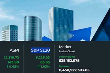 මේ අතර S&P SL20 දර්ශකය ද මේ දක්වා ඉතිහාසයේ ඉහළම අගය අද දින වාර්තා කිරීමට සමත්වූයේ දිනයේ ගනුදෙනු අවසානයේ දී ඒකක 6,226.03ක් දක්වා ඒකක 63.65ක වර්ධනයක් සනිටුහන් කරමිනි.