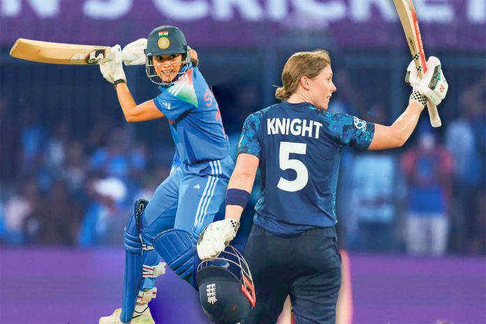ඉන්දියා – එංගලන්ත තරගයේ පළමුවෙන් පන්දුවට පහර දුන් එංගලන්තය සිය පන්දුවාර 50 අවසානයේ කඩුලු 8ක් දැවී ලකුණු 288 ක් රැස් කළේ ජයග්‍රහණය කළ හැකි පසුබිමක් නිර්මාණය කරමිනි. එංගලන්තයේ ඇමී ජෝන්ස් සහ ටැමී බියුමන්වි ආරම්භය ලබාගත් අතර ඇමී අගනා ලකුණු 56 ක් ලබාගත් අතර ටැමී බියුමන්වි ලකුණු 22ක් ඉනිමට එක් කළේ එංගලන්තයට හොඳ අඩිතාලමක් දමා දෙමිනි. ඉන් පසු එංගලන්තයේ නායිකා නැතලි ෂිවර් බ්‍රෙන්ට් සහ හෙදර් නයිට් එක්ව එංගලන්තය ඉතා ඉහළ තැනකට ගෙන ගියේ ඉන්දීය පන්දු යවන්නියන්ට රිසිසේ පහර දෙමිනි. අගනා ශතකයක් ලබාගත් නෙදර් නයිට් පන්දු 91 කදී ලකුණු 109 ක් ලබාගත්තාය.