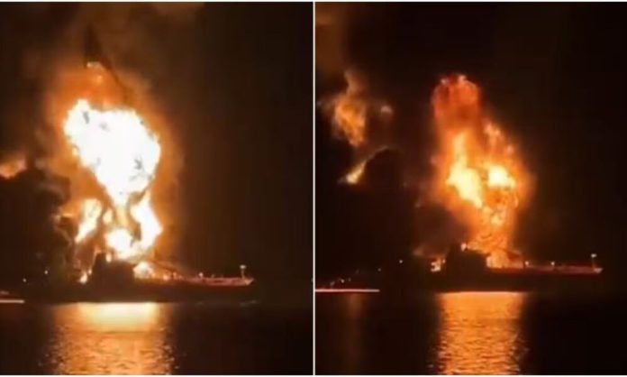 ඉරාක මුහුදු සීමාවේ දී ඉරානය තෙල් නැව් දෙකක් ගිනිබත් කරයි