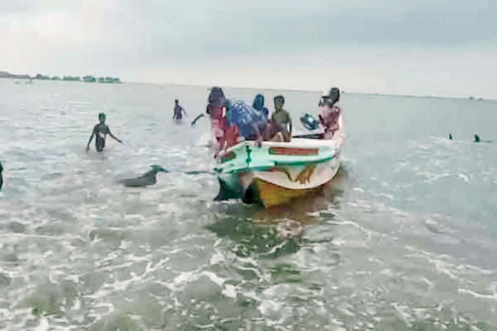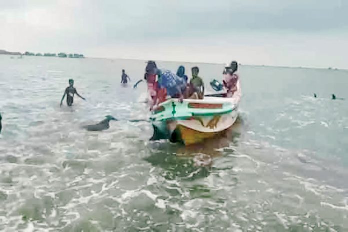 ඉලුප්පකඩවෙයි මුහුදු තීරයට ඩොල්ෆින් රංචුවක් ඇවිත්