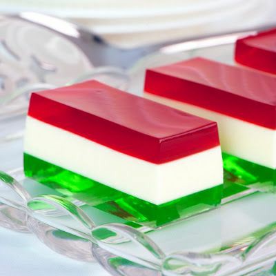 පුඩින් සකස් කරන බඳුන ගෙන එයට ස්ට්රෝබෙරි ජෙලි වලින් සකස් කර ගත් ජෙලි මිශ්රණය දමන්න. සුදු වර්ණය සඳහා සාමාන්ය ජෙලි වලට වතුර ටිකක් දමා පොගවා ගෙන මිශ්රණය උනු වතුර බඳුනක තබා ඩබල් බොයිල් ක්රමයට උණු කරන්න. ටින් කිරි සහ වතුර මිශ්ර කරන්න. මෙය සුපිරි ජෙලි තට්ටුව උඩට දමා ශීතකරණයේ තබන්න. කොළ වර්ණ ලෙමන් ජෙලි තට්ටුව අතුරා ගන්න. මෙය ශීතකරණයේ පැයක් පමණ තබා ඝන වූ පසු පිගානක් මතට අනිත් පැත්ත හරවා ටින් කිරි ටිකක් උඩින් දමා පිළිගන්වන්න