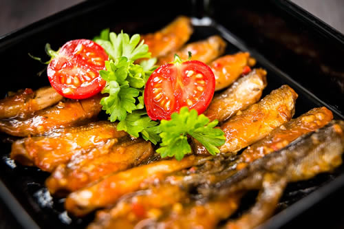 - භාජනයකට තෙල් දමා රත් කර මාළු බැද ගන්න.