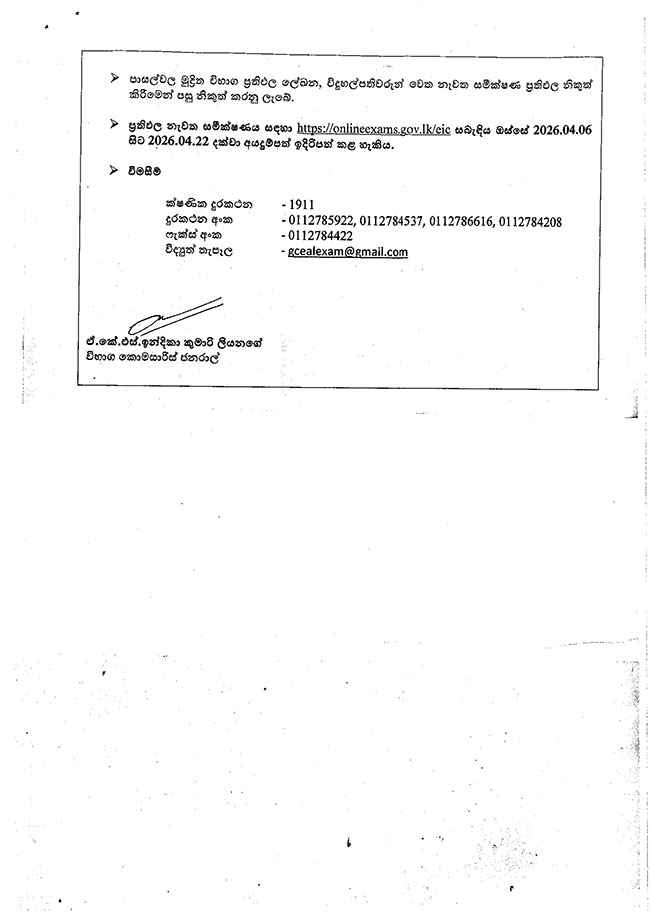 උසස් පෙළ ප්‍රතිඵල නිකුත් කෙරේ