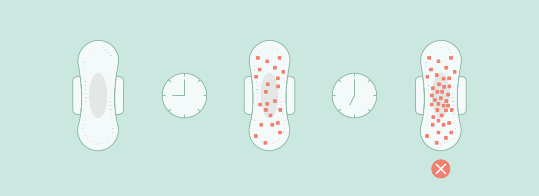 ඔබේ රුධිර පිටවීම මත පැය 04 කට කලින් ඔබේ සනීපාරක්ෂක තුවාය පිරී යන්න පුළුවන්. ඒ නිසා පැය 01 ක් 02 ක් අතර කාලයේදී වරින් වර පරීක්ෂා කර බලන්න පුළුවන්.