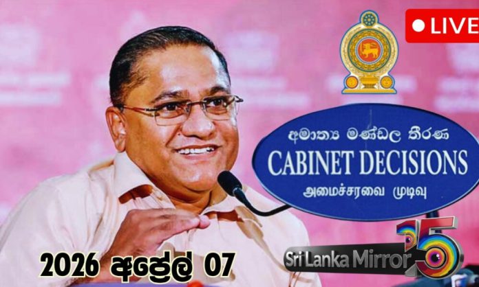 දේශීය පුවත් කැබිනට් තීරණ දැනුම්දීමේ මාධ්ය හමුව (සජීවී විකාශය) By dilshan - April 7, 2026 0 9 FacebookTwitterPinterestWhatsApp කැබිනට් මාධ්ය හමුව මේ වන විට ආරම්භ වී තිබේ. ඒ අමාත්ය විජිත හේරත් මහතාගේ ප්රධානත්වයෙනි. එහි සජීවී විකාශය පහතින් නරඹන්න. Saru News