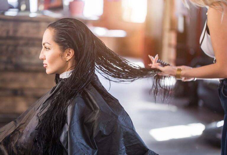 - වියළා ගත් කෙස් කොටස්වලට වෙන් කර කෙරටීන් ආලේප කරනවා.
