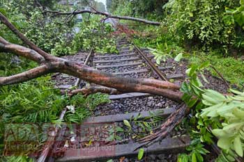 ගාල්ල, කටුගොඩ ප්රදේශයේදී දුම්රිය මාර්ගයට ගසක් කඩා වැටීම හේතුවෙන් එම මාර්ගයේ දුම්රිය ධාවනයට බාධා එල්ල වී තිබේ.