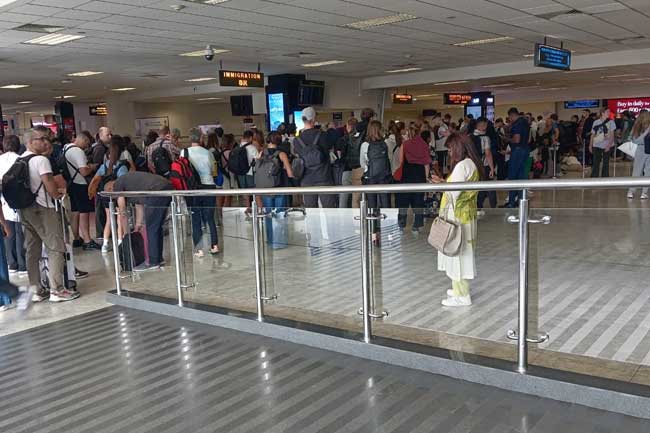 කෙසේවෙතත් පැය 02කට අධික කාලයකට පසු පරිගණක පද්ධතියේ ඇතිවු දෝෂය යථා තත්ත්වය පත් කිරීමට කටයුතු කර ඇති බව ගුවන්තොටුපොළ ආගමන විගමන බලධාරීන් සඳහන් කළේය.