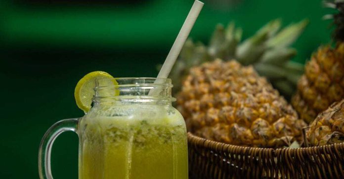 • පසුව අන්නාසි සිහින් කැබලිවලට කපා එහි ඉස්ම මිරිකා පෙරා ගෙන පසෙකින් තබන්න.