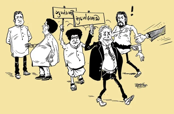ඇයි ඉතින් ආණ්ඩුවටත් ගහනවා. ජනාධිපතිටත් ගහනවා. වසන්ත සමරසිංහටත් ගහනවා. ඒ අස්සෙ තමන්ගේ පක්ෂයේ නිමල් සිරිපාලටයි රෝහිත අබේගුණවර්ධනටයි ඔක්කෝටම නෙළලා දානවා. මොකක්ද මේ වැඩේ තේරුම කියලා ඔන්න ඇතුළේ කතාව…