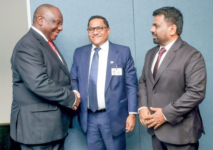 එක්සත් ජාතීන්ගේ මහා මණ්ඩලයේ 80 වැනි සැසිවාරයට සහභාගි වීම සඳහා ඇමරිකා එක්සත් ජනපදයට ගොස් සිටින ජනාධිපති අනුර කුමාර දිසානායක මහතා සහ දකුණු අප්‍රිකානු ජනාධිපති සිරිල් රමෆෝසා (Cyril Ramaphoza) මහතා අතර හමුව නිව්යෝර්ක් නුවර ONE Plazaහිදී පසුගියදා එක්සත් ජනපද වේලාවෙන් පස්වරුවේ පැවැත්විණි.