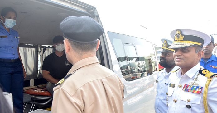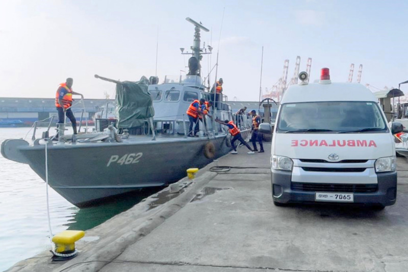ඒ අනුව, එම රෝගියා නාවික හමුදා යාත්රාව වෙත ලබාගැනීමෙන් පසු, මූලික ප්රථමාධාර ලබාදෙමින් කඩිනමින් කොළඹ වරාය වෙත රැගෙන ඒමෙන් අනතුරුව, වැඩිදුර ප්රතිකාර සඳහා මෙලෙස කොළඹ ජාතික රෝහල වෙත යොමු කිරීමට කටයුතු කර තිබේ.