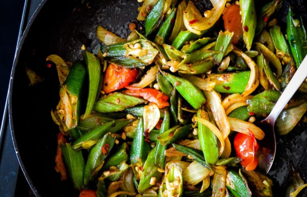 තක්කාලි සහ අමු මිරිස් සහ බණ්ඩක්කා එකතු කර බණ්ඩක්කා තැම්බෙන තුරු තබන්න.