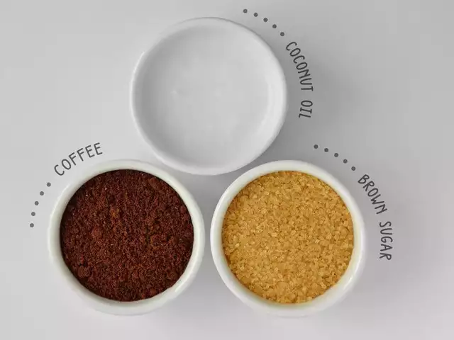 හොඳයි අද අපේ ස්ක්‍රබ් එක හදාගන්න අපිට ඕන වෙන්නෙ කෝපි, සීනි සහ පොල්තෙල් ස්වල්පයක් විතරමයි.