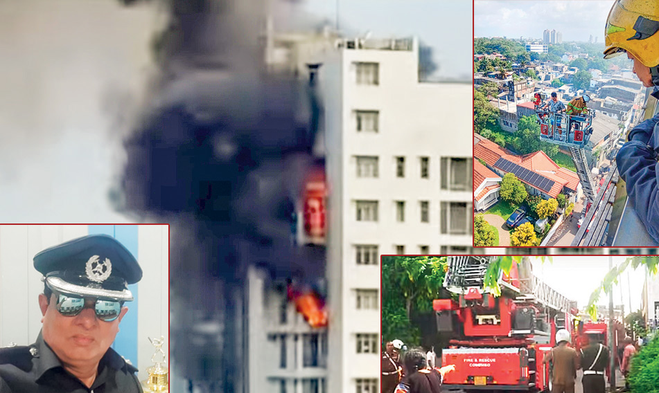 ගින්න හටගත් 5 වැනි මහලට ඉහළ මහල්වල සිරවී සිටි තවත් 10 දෙනෙකු ඉතා අපහසුවෙන් ස්කයිෆ්ට් රථයක ආධාරයෙන් පහළට රැගෙන ඔවුන්ගේ ජීවිත බේරාගෙන තිබේ.