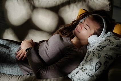 නින්දට පෙර සන්සුන් සංගීතයට සවන් දීමෙන් නින්දේ ගුණාත්මක භාවය වැඩිදියුණු කළ හැකි අතර නින්දට යාමට ගතවන කාලය අඩු කර ගත හැකි බව පර්යේෂණ මගින් පෙන්නුම් කර දීලා තිබෙනවා.
