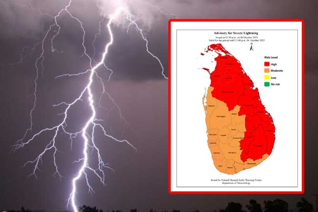 අකුණු මඟින් සිදුවන අනතුරු අවම කර ගැනීමට අවශ්ය පියවර ගන්නා ලෙස කාලගුණ විද්යා දෙපාර්තමේන්තුව ජනතාවගෙන් ඉල්ලා සිටී.
