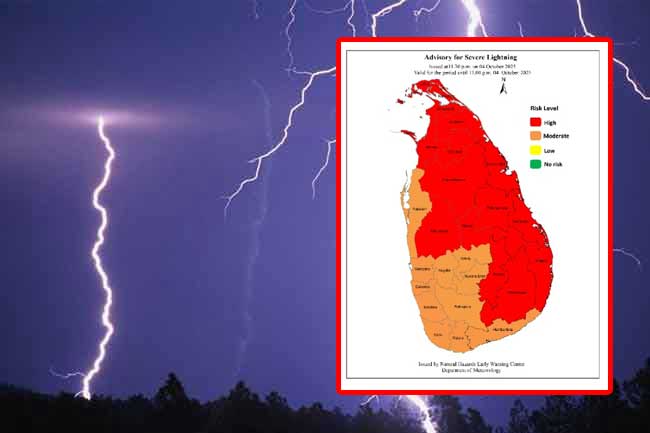 ප්‍රබල අකුණු පිළිබඳව අවවාදාත්මක නිවේදනයක් කාලගුණ විද්‍යා දෙපාර්තමේන්තුව විසින් නිකුත් කර තිබේ.