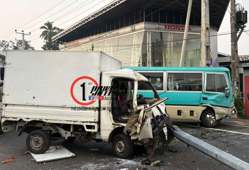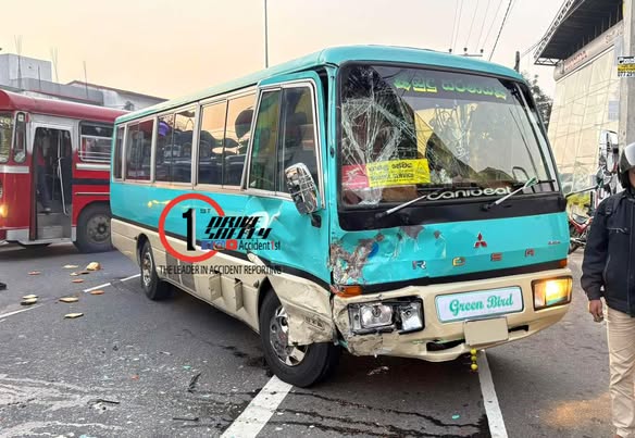 පාසල් බස් රථයක් සහ ලොරියක් අනතුරක – 120 මාර්ගයේ දැඩි රථවාහන තදබදයක් (ඡායා)