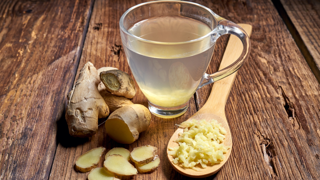 හොඳින් නටන උණු වතුර වලට සිහින්ව ගාන ලද ඉඟුරු එකතු කරන්න