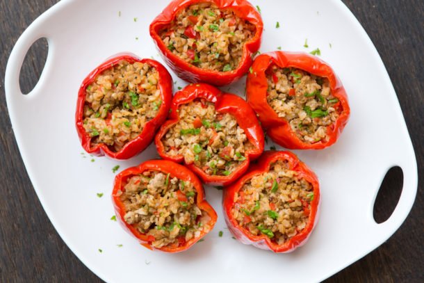 බාස්මතී බත් වලට ලුණු කුඩු, ගම්මිරිස් කුඩු, පාස්ලි සුදු ලුණු මිශ්‍ර කරන්න . මෙම මිශ්‍රණය බෙල්පෙපර් වලට පුරවා ගා ගත් චීස් උඩින් දමන්න. අවන් එකක තබා සෙන්ටිග්‍රේඩ් 250 උෂ්ණත්වයට විනාඩි පහළොවක් බේක් කරන්න. මෙය ඉවතට ගත් පසු චිලි සෝස් ටිකක් උඩින් දමන්න. පිළිගන්වන විට මස් සමග සලාද ටිකක් තබා  බැදගත් ඉස්සන් තබා පිළිගන්වන්න .