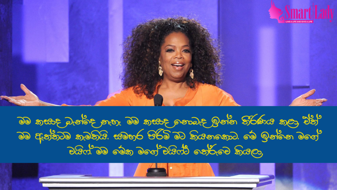 මෙහෙම කියන්නෙ ලෝක ප්රසිද්ධ කාන්තාවක් වන Oprah Winfrey.