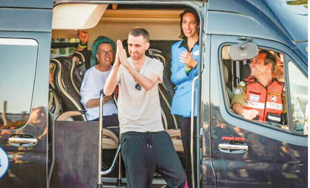 යුද්ධය ආරම්භ වී හරියටම දින 738 ට පසුව සටන් විරාමයේ කොන්දේසි අනුව හමාස් සංවිධානයේ ප්රාණ ඇපයේ සිටි ඊශ්රායල් වැසියන් විසි දෙනා නිදහස් කරන්නට විය. එමෙන්ම එදින ඇමෙරිකා එක්සත් ජනපදයේ ජනාධිපති ඩොනල්ඩ් ට්රම්ප් මහතා ඊශ්රායලය වෙත හදිසි විදේශ සංචාරයකට පැමිණි අතර ඇමෙරිකානු ජනාධිපති විසින් ඊශ්රායලයේ පාර්ලිමේන්තුව ඇමතීම කැපී පෙනුණු කාරණයක් බව විදෙස් මාධ්ය වාර්තා කර තිබුණි.