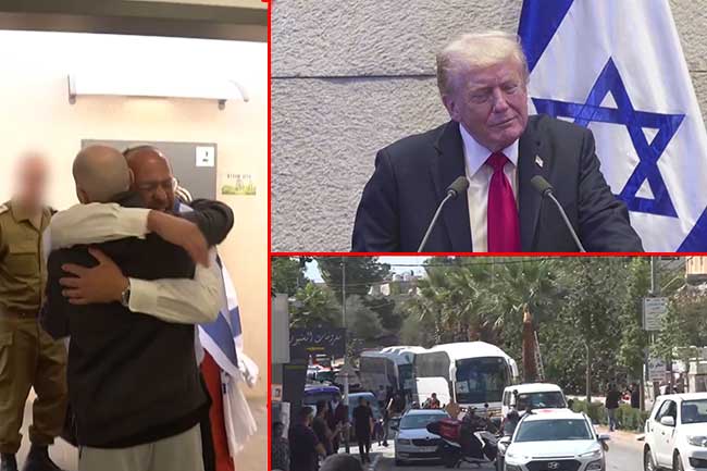 ප්රාණඇපකරුවන් නිදහස් කිරීමට සමගාමීව එම කර්තව්ය සඳහා ප්රබල දායකත්වයක් ලබාදුන් අමෙරිකානු ජනාධිපති ඩොනල්ඩ් ට්රම්ප් ඊශ්රායලයේ බෙන් ගූරියන් ගුවන් තොටුපොළට ගොඩබැස්සේ අගමැති බෙන්ජමින් නෙතෙන්යාහු සහ ජනාධිපති අයිසැක් හර්සොග් ගේ ද හරසර මැදයි.