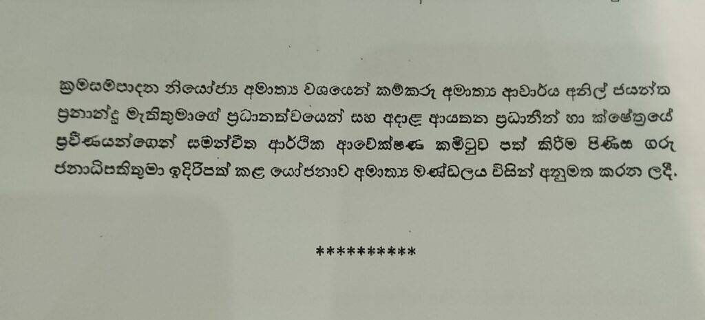 අමාත්‍ය ආචාර්ය අනිල් ජයන්ත ප්‍රනාන්දු මහතාගේ මූලිකත්වයෙන් ක්‍රියාත්මක වන මෙම කමිටුව හරහා ගෝලීය අර්බුද හමුවේ දේශීය ආර්ථිකය ආරක්ෂා කර ගැනීම අපේක්ෂා කෙරේ. විශේෂයෙන්ම ශ්‍රී ලංකාව බලශක්ති ආනයනය සහ විදේශ ප්‍රේෂණ සම්බන්ධයෙන් මැදපෙරදිග කලාපය මත දැඩි ලෙස රඳා පවතින බැවින්, මෙම අවදානම් තත්ත්වයන් කල්තියා හඳුනා ගැනීම අත්‍යවශ්‍ය වේ.