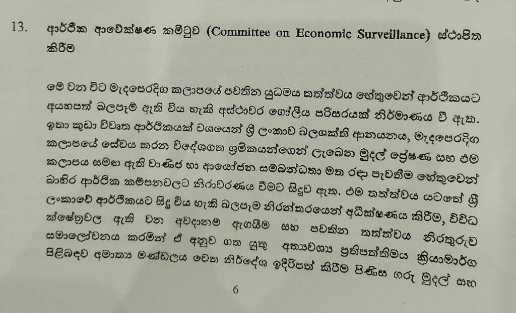 මැදපෙරදිග කලාපයේ පවතින අස්ථාවර යුධමය වාතාවරණය හමුවේ ශ්‍රී ලංකාවට එල්ල විය හැකි ආර්ථික බලපෑම් පිළිබඳව සොයා බැලීම සඳහා විශේෂ අධීක්ෂණ කමිටුවක් පත් කිරීමට රජය තීරණය කර ඇත.
