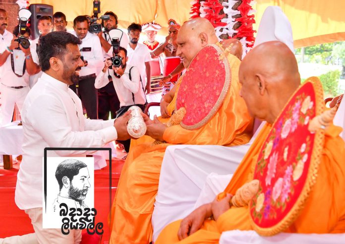 ජනාධිපති අනුර කුමාර දිසානායක ඉකුත් සතියේ (03දා) මහනුවර ශ්‍රී දළදා මාලිගාවේ ඓතිහාසික මඟුල් මඩුවේ පැවැති, නාරම්පනාවේ ආනන්ද අනුනාහිමියන්ට අස්ගිරි පාර්ශ්වයේ අනුනාහිමි ධුරය පිළිබඳ සන්නස් පත්‍රය පිළිගැන්වීමේ උළෙලේදී මහනාහිමිවරුන් ප්‍රමුඛ මහා සංඝරත්නය අබියසදී සපථ කළේ මේ ආණ්ඩුව චිරාගත ජාතික සංස්කෘතික හර පද්ධතීන්වලට පිටුපාමින් රට පාලනය නොකරන බවය. එය මෙරටේ රාජ්‍ය නායකයකු විසින් ඓතිහාසික මඟුල් මඩුවේදී කරන ලද ප්‍රකාශයක් ලෙසද ඉතිහාසයට එක්වනු ඇත. ජනාධිපතිවරයාගේ මෙම ඓතිහාසික ප්‍රකාශයට නිමිති වූයේ ශ්‍රී ලංකා සංචාරක සංවර්ධන ප්‍රවර්ධනය සඳහා එම කාර්යාංශයේ සභාපතිවරයා වූ බුද්ධික හේවාවසම් විසින් කරන ලද බැව් සඳහන් කරුණක් සම්බන්ධ ලිපියකට මහනාහිමිවරුන් විරෝධය දක්වා එවූ සන්දේශයකි. මල්වතු – අස්ගිරි, අමරපුර හා රාමඤ්ඤ නිකායවල මහනායකවරුන්ගේ අත්සන් එයට යොදා තිබුණු අතර එය ජනමාධ්‍යවලට ද නිකුත් කර තිබුණි. මෙම සංචාරක ප්‍රවර්ධනය ගැන කතෝලික සභාවද විරෝධය දක්වා තිබුණු අතර මැල්කම් රංජිත් කාදිනල් තුමා එය ප්‍රසිද්ධියේම හෙළා දුටහ. කාදිනල් තුමා අනුමාන කළේ මේවා ආණ්ඩුවේ ලොකු උදවිය නොදැන සිදුවිය හැකි බවය.