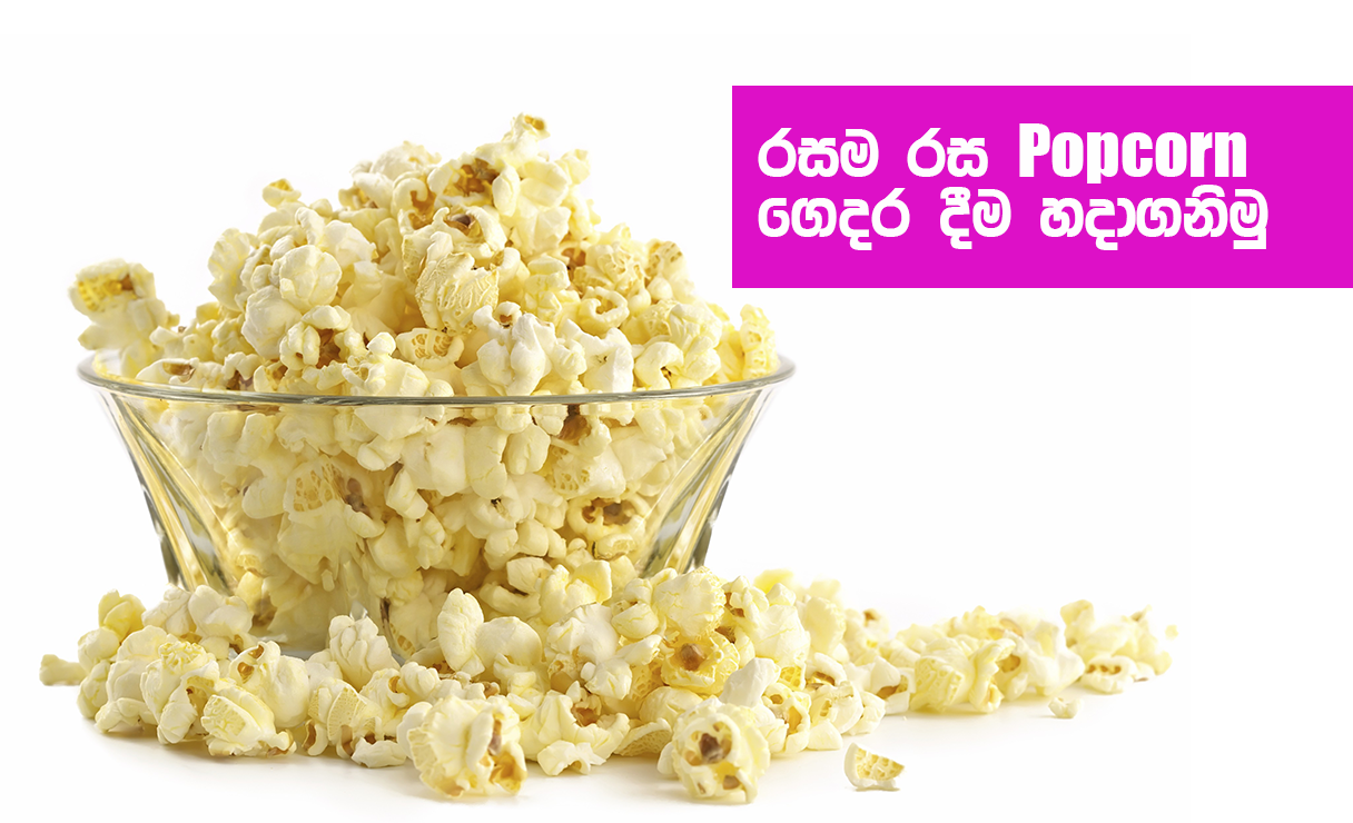 Popcorn යන් ලෝකය පුරාම ඉතාමත්ම ජනප්‍රිය ආහාරයක්. අප බොහෝ විට පුරුදුව සිටිනුයේ සැකසූ පොප් කෝන් වෙළඳපළෙන් මිලට ගැනීමටයි. නමුත් මිල මේවායහි  කල් තබාගැනීමට විවිධ ද්‍රව්‍ය එකතු කරලා තබෙන නිසා නැවුම් රසයක් දැනෙන්නේ නැහැ. එනිසා රසට ගුණට පිරිසිදුවට මෙන්න මේ විදිහට ගෙදරදීම හදාගන්න..