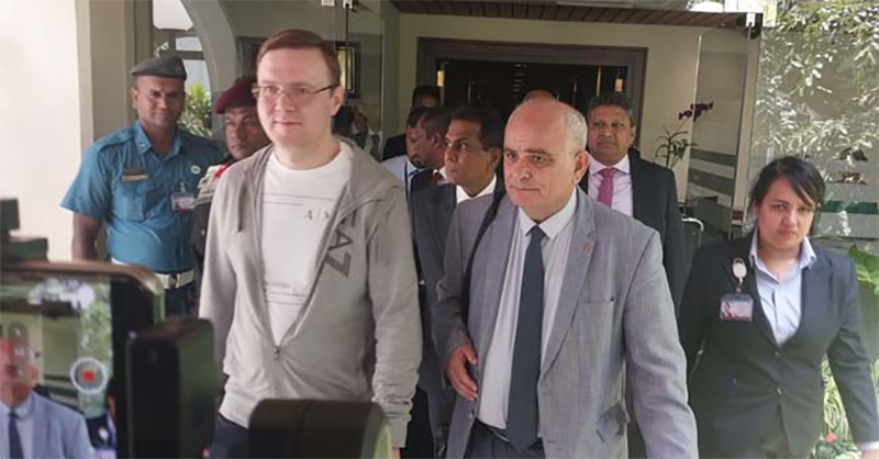 ඔවුන් පිළිගැනීම සදහා ආර්ථික සංවර්ධන කටයුතු නියෝජ්ය ඇමති නිශාන්ත ජයවීර, ශ්රී ලංකාවේ රුසියානු තානාපති ලෙවාන් ජගාරෙයාන් (Levan Dzhagaryan) ඇතුළු පිරිසක් කටුනායක ගුවන් තොටුපොළ විශේෂ අමුත්තන්ගේ මැදිරිය වෙත පැමිණ සිටියහ.