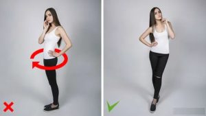 ඔබ සම්පූර්ණ ජායාරූපයකට පෙනීසිටිනවා නම් කකුලේ ඉහළ සිට  කතිරයක්වන සේ වළළුකරවල් එකිනෙක මත සිටිනසේ සිටගන්න. එවිට උකුල පෙදෙස පටුවටත් කකුල් දිගුවටත් පෙනේවි. මෙය ඉඳගෙන  සිටියදී ගන්නා ඡායාරූපයකට පවා භාවිතාකලහැකි ක්‍රමයකි. කොන්ද කෙලින් තබාගෙන වළළුකරවල් වලින් කකුල් කතිරයක්සේ එකිනෙක මත සිටිනසේ තබා ඡායාරූපය ලබාගන්න.