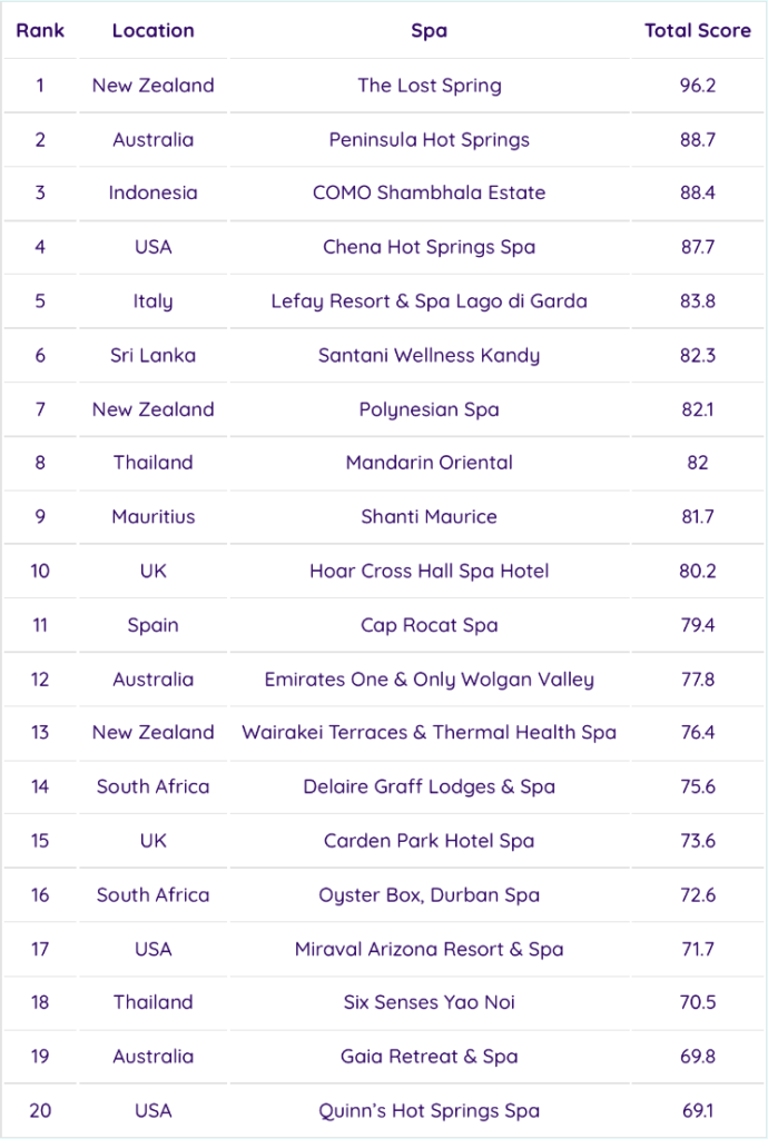 මෙම ශ්රේණිගත කිරීම සිදුකර ඇත්තේ ස්පා රිසෝට් වල ආකර්ශනීය බව අනුව ලකුණු ලබාදෙමිනි.