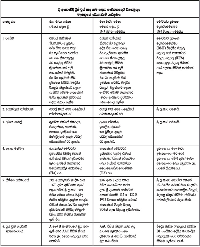 (1) ජාත්යන්තර රියදුරු බලපත්රය + ආවරණ බලපත්රය (1949 සම්මුතිය සහ 1958 යටතේ ගැසට් අංක 11,603)