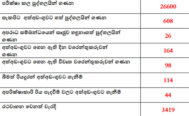 එහිදී ඊයේ දිනට වාර්තාවට අනුව පුද්ගලයින් 26600ක් පරීක්ෂා කර ඇති අතර ඉන් සැකපිට පුද්ගලයින් 608ක් අත්අඩංගුවට ගෙන තිබේ.