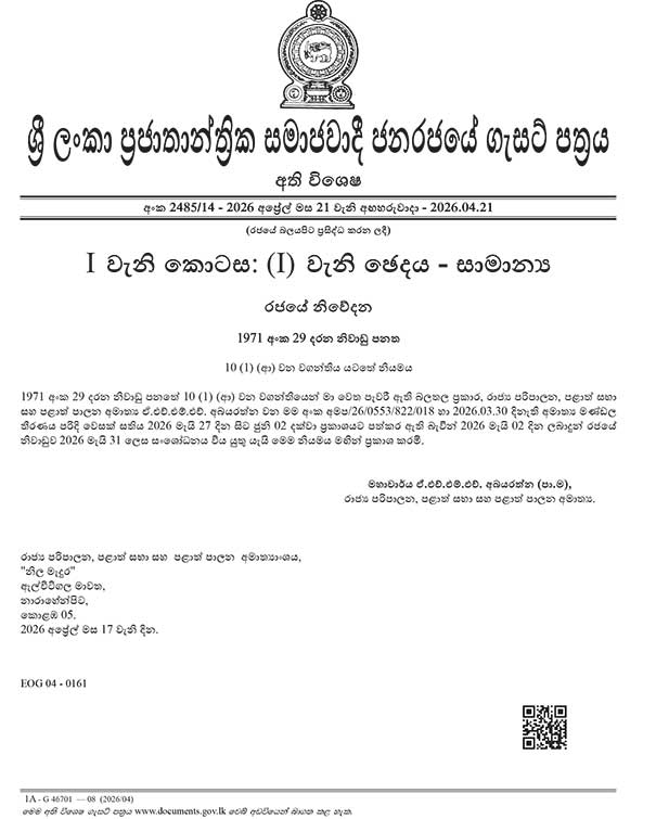 2026 මැයි 2වැනිදාට යෙදී තිබූ නිවාඩුව, මැයි 31 ලෙසින් සංශෝධනය කර ඇති බව රාජ්ය පරිපාලන, පළාත් සභා සහ පළාත් පාලන අමාත්යාංශය අති විශේෂ ගැසට් නිවේදනයක් මගින් ප්රකාශයට පත්කර තිබේ.