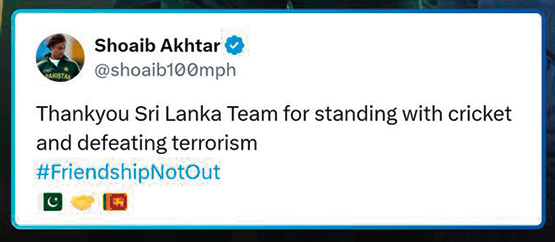 ක්රිකට් සමග සිටින ත්රස්තවාදය පරාජය කිරීම ගැන ශ්රී ලංකාවට ස්තුතිය – ෂොයිබ් අක්තාර්