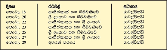 විස්සයි විස්ස තරගාවලියේ සියලුම තරග ද මේ අනුව රාවල්පින්ඩි ක්රීඩාංගණයේදී පැවැත්වීමට නියමිතය.